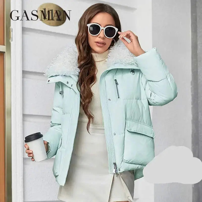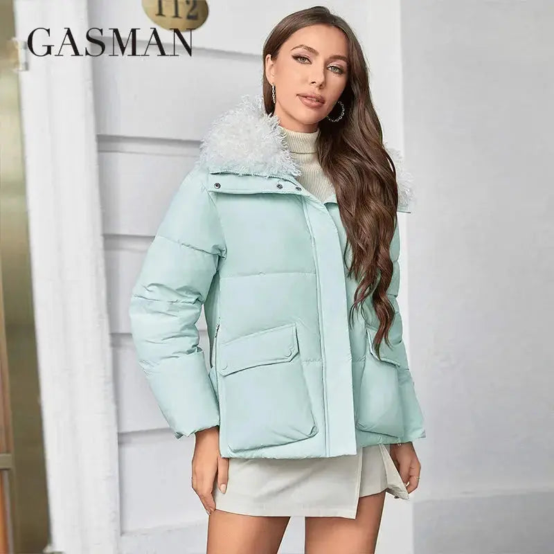 Doudoune Slim avec Col Doublé en Fourrure - Vert / L