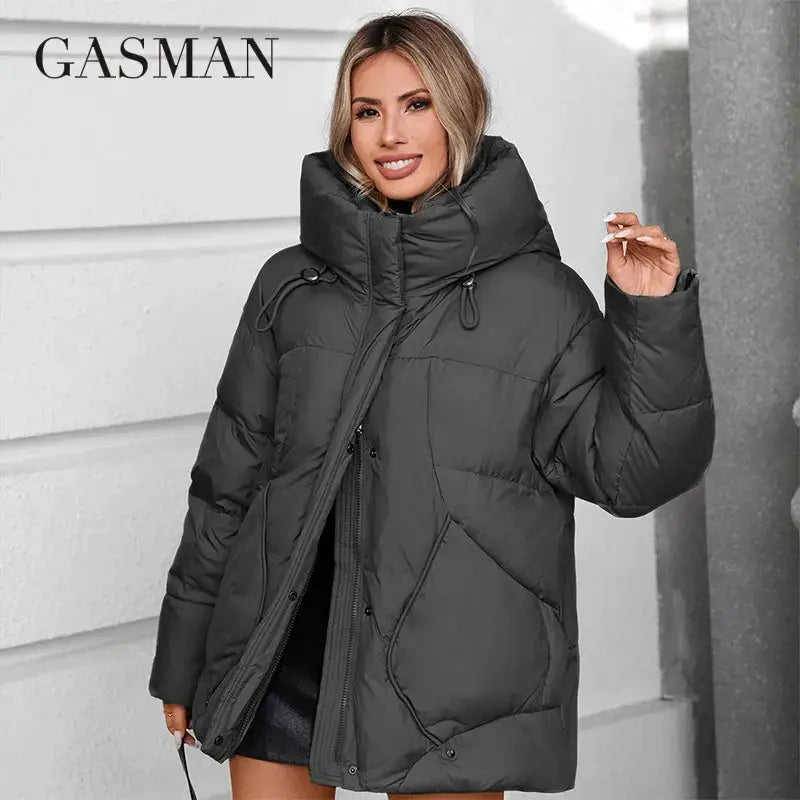 GASMAN 2024 Winter-Daunenjacken-Kollektion Fashion Solid Stehkragen Damenmantel Eleganz Kapuze Damenjacken 88613 - M436 graugrün / XXL